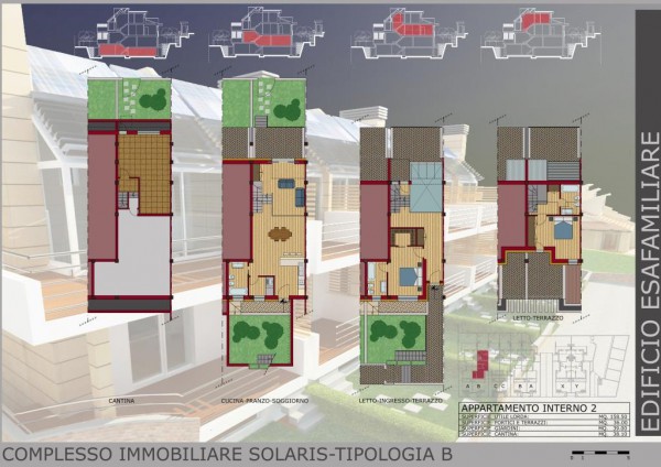 Gli immobili, in classe A3 o A4, sono costruiti pensando la distribuzione degli spazi interni alla massima efficienza energetica donata dalla SERRA SOLARE, elemento centrale del progetto. Infatti le costruzioni si sviluppano attorno alla serra solare che durante l'inverno permette di riscaldare l'immobile attraverso i raggi solari e durante tutte le altre stagioni, illumina in modo eccezionale la maggior parte dell'abitazione.